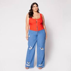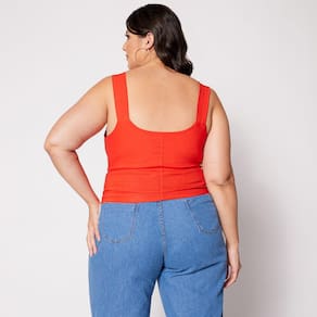 Blusa Cropped de Alça Plus Corset com Colchetes e Bojo Laranja