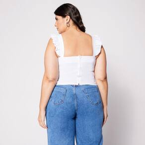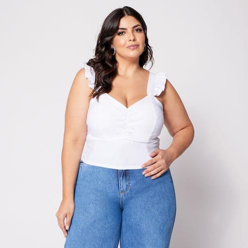 Blusa Cropped de Alça Plus Franzido com Babado na Manga
