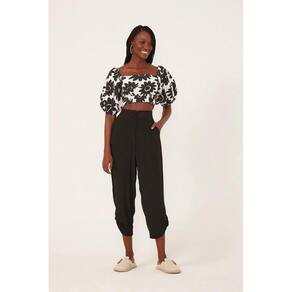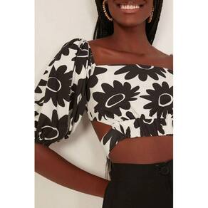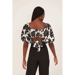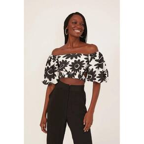 Blusa cropped estampado com as mangas bufante Perfeito para trazer