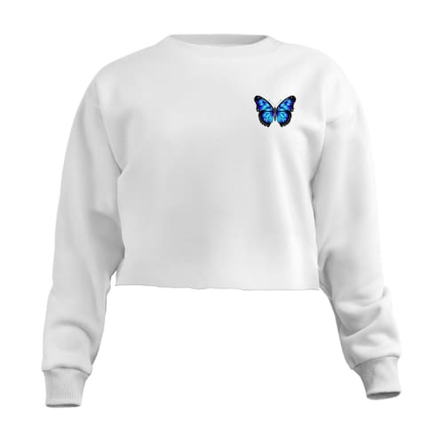 Blusa Cropped Moletom Borboleta Feminino Personalizado com Cintura Descosturada - Branco - P