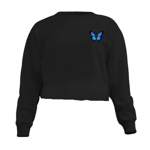 Blusa Cropped Moletom Borboleta Feminino Personalizado com Cintura Descosturada - Preto - G