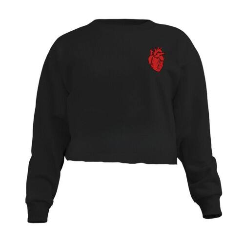 Blusa Cropped Moletom Coração Feminino Personalizado com Cintura Descosturada - Preto - M