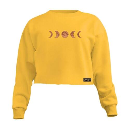 Blusa Cropped Moletom Fases Da Lua Feminino Personalizado com Cintura Descosturada - Amarelo - P