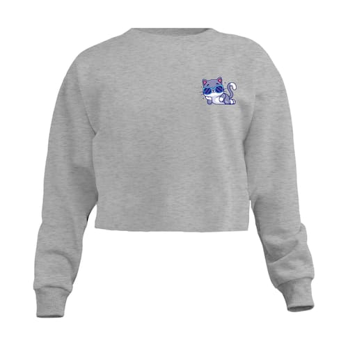Blusa Cropped Moletom Gato Feminino Personalizado com Cintura Descosturada - Cinza - P