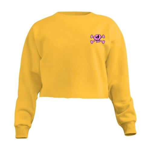 Blusa Cropped Moletom Rock And Roll Feminino Personalizado com Cintura Descosturada - Amarelo - P