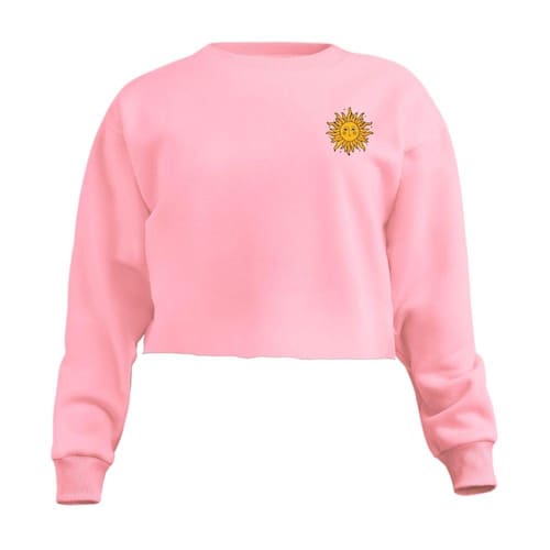 Blusa Cropped Moletom Sol Feminino Personalizado com Cintura Descosturada - Rosa - G