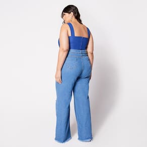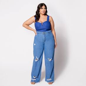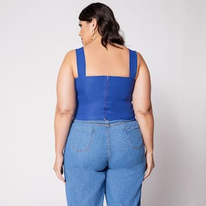 Blusa Cropped Plus com Aro em V e Bojo Azul