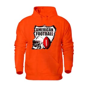Blusa de Frio Moletom Abrigo Masculino Inverno Flanelado Com Bolso Canguru Estampado - Laranja - GG