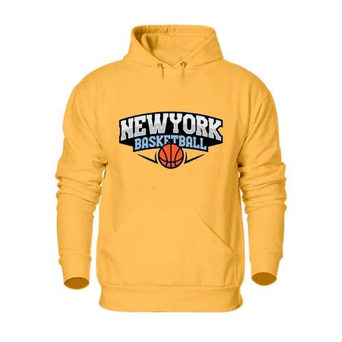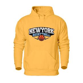 Blusa de Frio Moletom Masculino Flanelado Estampa Basquete Punho e Capuz Cordao Ajustavel - Amarelo - M