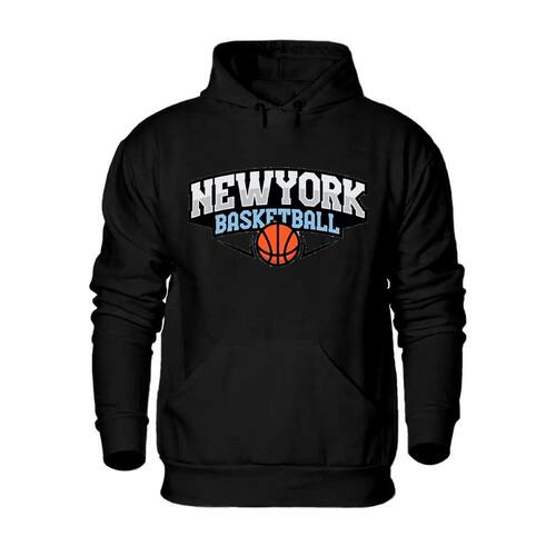 Blusa de Frio Moletom Masculino Flanelado Estampa Basquete Punho e Capuz Cordao Ajustavel - Preto - P