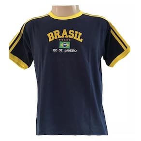 Blusa Do Brasil Bandeira Bordada Unissex - Azul Escura Tamanho: EXG Camisa Bordada do BRASIL - Unissex Não é babylook