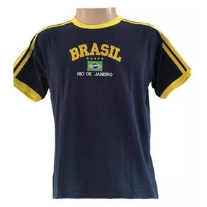Blusa Do Brasil Bandeira Bordada Unissex - Azul Escura Tamanho: GG Camisa Bordada do BRASIL - Unissex Não é babylook