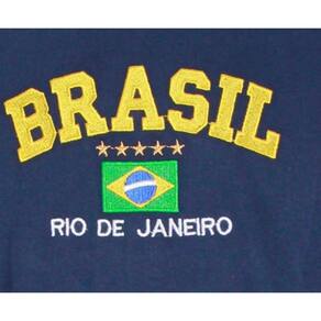 Blusa Do Brasil Bandeira Bordada Unissex - Azul Escura Tamanho: P Camisa Bordada do BRASIL - Unissex Não é babylook