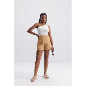 Blusa feminina com decote assimétrico Essendi M - Bege - P