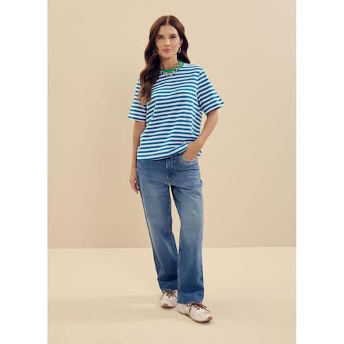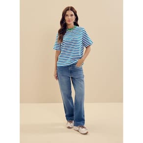 Blusa feminina com listras collab Essendi e Brandili - Azul médio - P