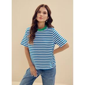 Blusa feminina da Essendi confeccionada em malha fio tinto de alta qualidade com listras, garantindo durabilidade e cores vivas que se mantêm mesmo após várias lavagens. Possui biopolimento, que promete um toque macio e acabamento impecável. Com mangas curtas e gola redonda em cor contrastante, é uma peça prática, estilosa e essencial no seu guarda-roupa. Invista em qualidade e conforto.