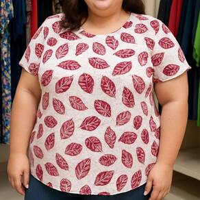A Blusa Feminina Essência Estampada Folhas Plus Size une conforto, estilo e elegância em uma única peça.