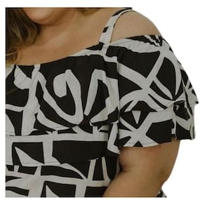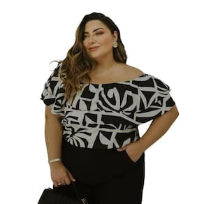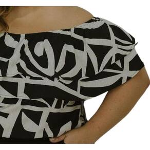 Descrição: Blusa em viscose sarjada estampado, manga solta, com elástico na parte do ombro para melhor caimento, alça removível, babado na parte de cima do busto, tecido leve em viscose