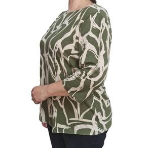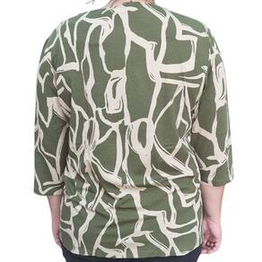 Blusa Feminina Estampada Verde 3/4 Laiza Plus Size.