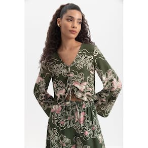 A blusa feminina Essendi é a escolha perfeita para um guarda-roupa ideal para o dia a dia. Confeccionada em tecido creponado, conta com estampa digital floral, mangas longas em modelagem flare, decote em V além de um detalhe em pregas com elástico no comprimento da frente para ajuste da modelagem, assim caimento se torna perfeito. Leveza, sofisticação e muito estilo. Uma peça ideal para compor looks incríveis e autênticos, invista! Marca: Não Informado