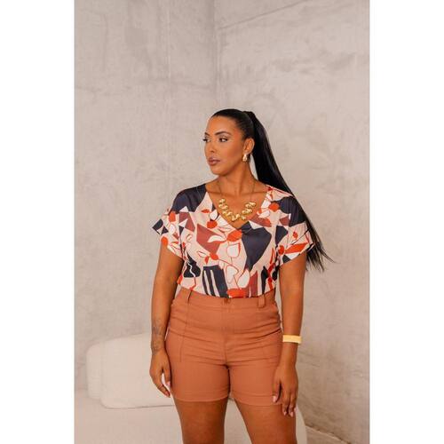 BLUSA FEMININA ESTAMPA FLORAL PLUS SIZE. Eleve o seu guarda-roupa com esta impressionante blusa feminina plus size, uma mistura de expressão artística e conforto. Feita com uma mistura harmoniosa de poliéster para durabilidade e viscose para toque macio, esta blusa oferece qualidade duradoura e toque suave na pele. A blusa apresenta estampa ousada e abstrata, apresentando formas geométricas e orgânicas em uma paleta cativante de vermelho, branco e marinho. Este design atraente não está apenas na moda, mas também é atemporal em seu apelo, perfeito para quem quer fazer uma declaração de moda. O padrão acrescenta movimento dinâmico à peça, garantindo que ela se destaque em qualquer ambiente. A silhueta da blusa é desenhada com um corte moderno e lisonjeiro. Suas mangas curtas e decote em V são ideais para exibir joias, enquanto o corte descontraído proporciona uma sensação confortável e alegre que não compromete o estilo. Esta blusa é uma peça versátil que pode transitar facilmente de ambientes profissionais para passeios casuais. **ATENÇÃO SEGUE ABAIXO AS MEDIDAS BLUSA** TAMANHO: 44 Busto:114 Cintura:110 Quadril:116 Manga: 44 Altura: 59 ---------------------------- TAMANHO:46 Busto:124 Cintura:112 Quadril:120 Manga:45 Altura:60 ---------------------------- TAMANHO: 48 Busto:128 Cintura:114 Quadril:124 Manga:46 Altura:46 ---------------------------- TAMANHO:50 Busto:132 Cintura:118 Quadril:128 Manga: 48 Altura:98