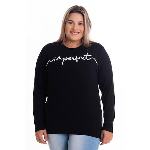 Blusa feminina manga longa elaborada em viscose com elastano. Possui boa elasticidade, estampada "Imperfect", toque macio, uma peça leve, ideal para o dia a dia, seja como destaque no look ou ainda sobreposta por jaquetas, casacos, etc. Uma básica clássica, porém diferenciada! Qualidade e conforto já ao primeiro toque.