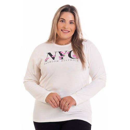 Blusa feminina manga longa elaborada em viscose com elastano. Possui boa elasticidade, estampada "NYC", toque macio, uma peça leve, ideal para o dia a dia, seja como destaque no look ou sobreposta por jaquetas, casacos, etc. Uma básica clássica, porém diferenciada! Qualidade e conforto já ao primeiro toque.