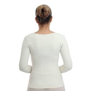 Blusa feminina manga longa decote redondo, cor palha clássica, em tecido LIGHT CO2 biodegradável (fio AMNI SOUL ECO, o primeiro fio de nylon biodegradável do mundo) e com fator de proteção solar 50FPS+ UVA e UVB.