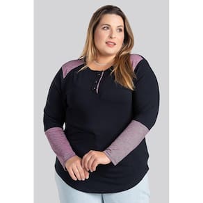Blusa feminina elaborada em viscose com elastano. Possui botões funcionais no decote, detalhes contrastantes nas laterais da gola, mangas e botões que dão aquele diferencial a peça. Possui a barra arredondada, que proporciona o efeito tapa bumbum, proporcionando aquele conforto e segurança que toda mulher deseja na hora de montar seus looks. Seu toque é macio, uma peça leve e com boa elasticidade.