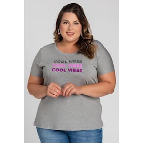 Blusa feminina elaborada em visco. Possui boa elasticidade, toque leve, macio e estampa na parte da frente "Cool Vibes" (Boas vibrações). Aquela peça que te proporcionará todo o conforto na hora de vestir e pode ser usada para compor desde seu look esportivo ao social, para o dia ou noite, use a imaginação e sinta-se mais linda.