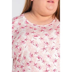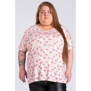 T-shirt feminina plus size elaborada em malha visco decote redondo e estampada. Peça leve, com toque macio, boa elasticidade, aquela básica que toda mulher deve ter em seu guarda roupas. Combine-a com looks casuais com seu jeans favorito por exemplo para um passeio, trabalho, dia a dia de modo geral ou até mesmo com aquela calça social e blazer de alfaiataria! Use e abuse na hora de montar seus looks sem deixar de lado o conforto e bem vestir!