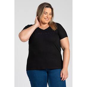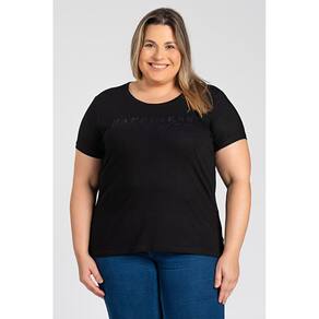 T-shirt feminina plus size elaborada em malha visco decote redondo.