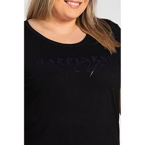 Peça leve, com toque macio, boa elasticidade e estampa em gel trazendo um diferencial, com escrita "happiness looks gorgeous on you".