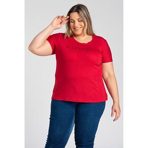 T-shirt feminina plus size elaborada em malha visco decote redondo.