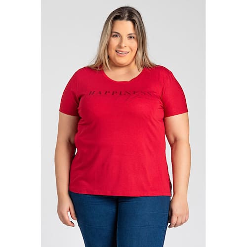 T-shirt feminina plus size elaborada em malha visco decote redondo.