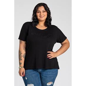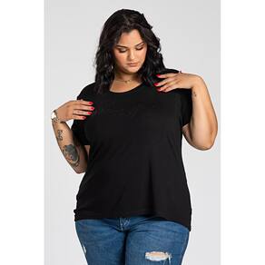 T-shirt feminina plus size elaborada em malha visco decote redondo.