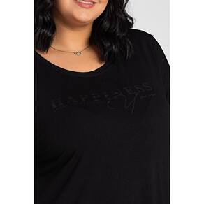 Peça leve, com toque macio, boa elasticidade e estampa em gel trazendo um diferencial, com escrita "happiness looks gorgeous on you".