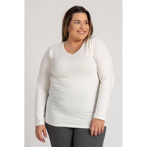 Blusa feminina elaborada malha cotton, com gola "V", boa elasticidade. Uma blusa básica que toda mulher precisa, gosta de ter! Toque macio! Use-a em dias mais frios como segunda pele, sobrepostas por jaquetas, cardigans, casacos por exemplo. Em dias de temperatura mais amena deixe ela brilhar no look e faça as mais variadas composições!