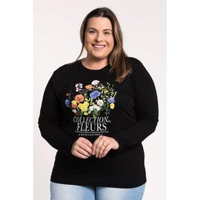 Blusa feminina plus size elaborada em visco. Possui estampa na parte da frente "Colletion Fleuers", toque macio, peça leve com boa elasticidade! Nos dias frios tenha aquela peça para usar como destaque do look ou sobreposta e que será a queiridinha de seu guarda roupas, pois toda mulher ama uma "básica, nada básica"!