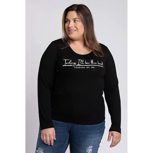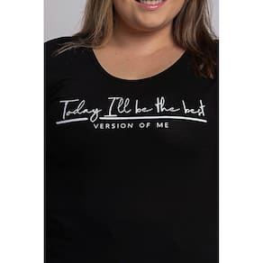 Blusa Femina plus size elaborada em visco. Possui estampa na parte da frente "Today i'll be the beste version of me" (todo dia serei a minha melhor versão). peça leve, com boa elasticidade. Monte do look casual ao chique, use-a como destaque ou sobreposta por jaquetas, cardigan, etc. Você terá inúmeras possibilidades de looks, seja para aquele passeio, para trabalhar ou ficar em casa.