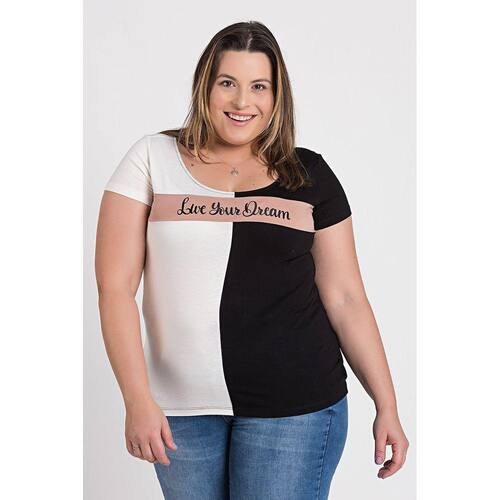 Blusa feminina plus size elaborada em malha visco. Possui estampa na frente "LIVE YOUR DREAM" (Viva seu sonho), elaborada em 03 cores contrastantes que dão um charme a mais na hora de vestir. Uma peça leve, macia, ideal para o dia. Componha os mais variados looks desde o casual ao elaborado, para o dia ou a noite, esteja bem vestida e sinta-se confortável!