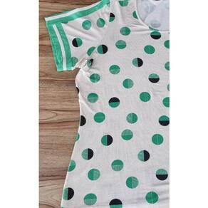 Com estampa de bolas em tons de verde, a peça traz um toque de personalidade e frescor ao look, ideal para o dia a dia.