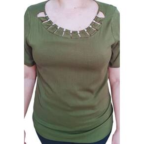 Blusa Feminina Raio De Luz Verde Gola Detalhada Strass.