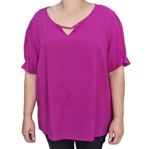 Blusa Feminina Trave Franzido MC Plus Size Fucsia.