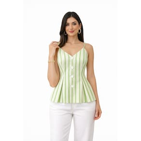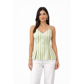 Blusa Feminina Tricoline Listrada Decote V Elegante Moderna - Verde - P