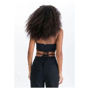 A blusa possui modelage, cropped, detalhe de lastex na barra e no punho e manga 3/4.