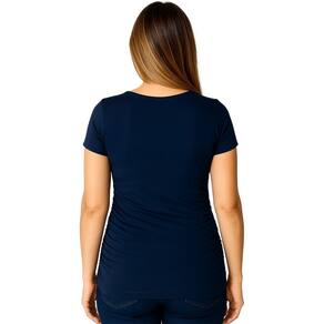 Elástico na lateral para se adequar ao tamanho da barriga.