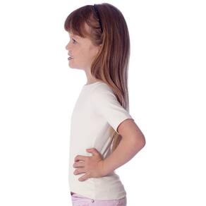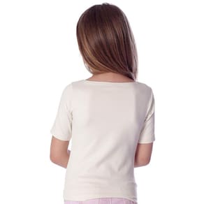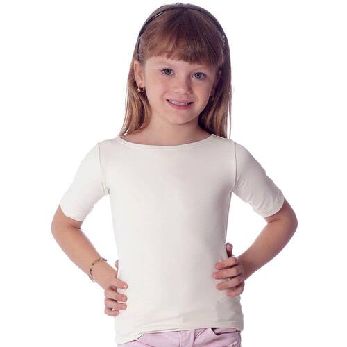 Blusa infantil feminina meia manga decote canoa palha, clássica e atemporal, em tecido LIGHT CO2 biodegradável (fio AMNI SOUL ECO, o primeiro fio de nylon biodegradável do mundo), com fator de proteção solar 50FPS+ UVA e UVB.