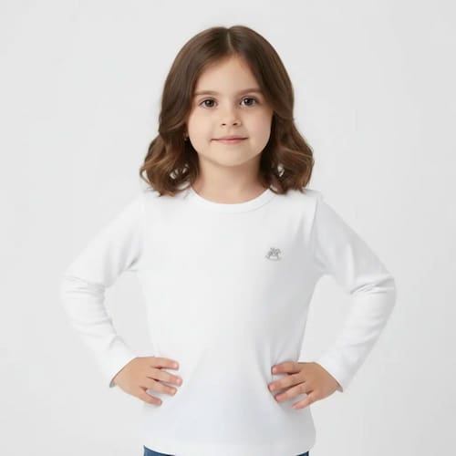 Blusa básica para meninas Up Baby em cotton, perfeita para compor qualquer look. Em malha super confortável, possui emblema da marca bordado em furta-cor. Ideal para o inverno.