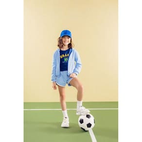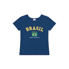 Blusa infantil menina confeccionada em malha leve e confortável. Com mangas curtas e gola redonda, essa peça traz uma estampa vibrante do Brasil. Perfeita para mostrar o amor pelo nosso país na copa do mundo. A modelagem tradicional garante um caimento ideal, permitindo liberdade de movimento para as pequenas. Combine com shorts ou saias da coleção para um look divertido e cheio de estilo.